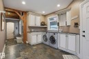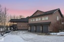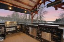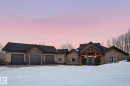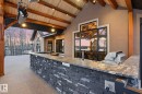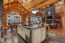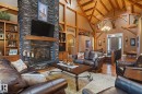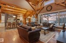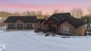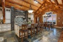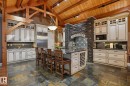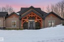 This timber frame home sits on over 500 feet of lakefront shoreline in a quiet, private corner of Jackfish Lake. The design centers on lake views, w/the structure carefully placed among the surrounding woods for a natural, integrated feel. The property includes two large stacked 30' x 40' garages: one set up as a clean showroom space, the other as a functional workshop. With 11–12 foot ceilings, 9'x9' upper doors & 9'x10' lower doors. In-floor heating runs throughout the home, including the basement, both garages, & the main floor (which required pouring 3 inches of concrete across the entire level). Outside, the fully equipped outdoor kitchen is covered & heated, so you can cook and gather comfortably in any weather while enjoying the lake views and peaceful surroundings. With a designated RV area, you're all set up to handle guests. Jackfish Lake is known to be clean & calm, with many bays & only short docks required. 20 mins to Spruce Grove, 35 mins to Edmonton. Your natural oasis awaits.